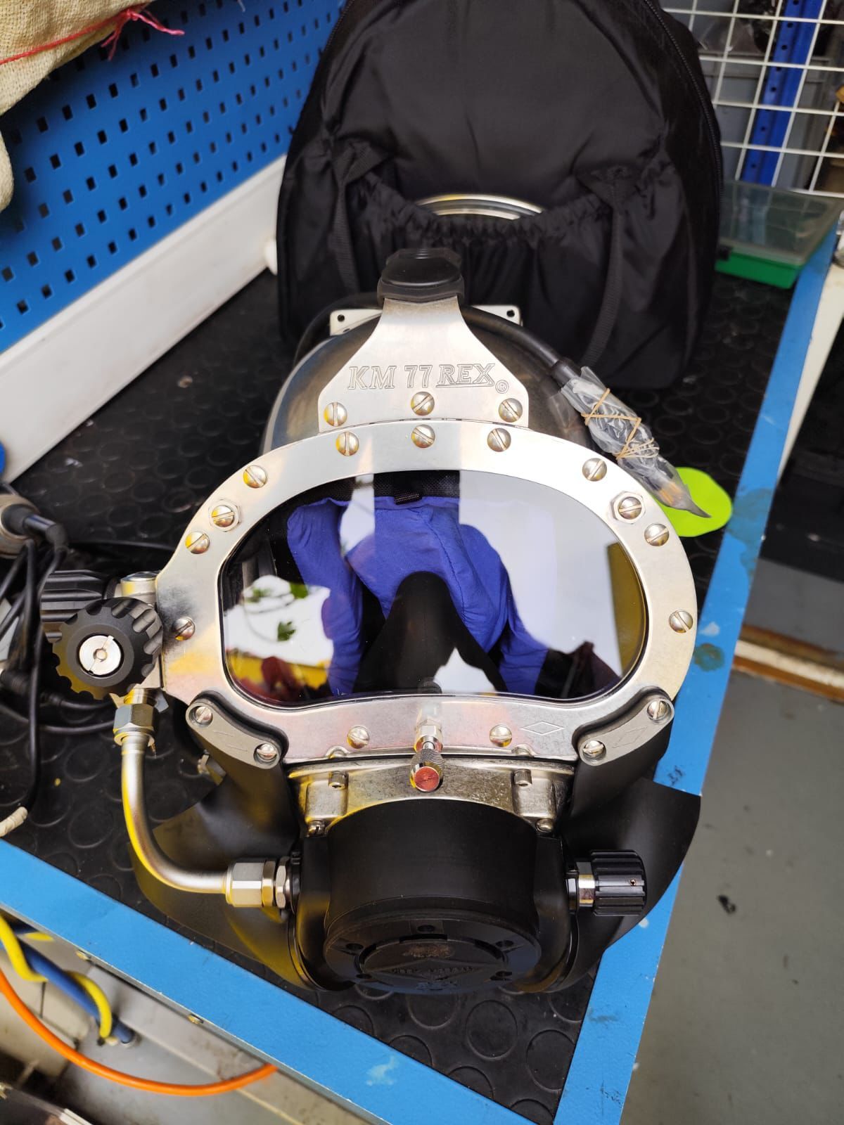 Brand new and unused Kirby Morgan KBM77 dive helmet for offshore and inshore projects is available for immediate sale.