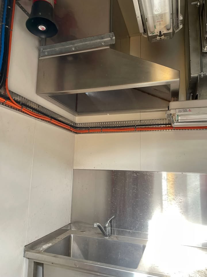 In excellent structural condition – fully enclosed stainless steel fit-out with sink, benches, lighting, and ventilation/air filtration system.